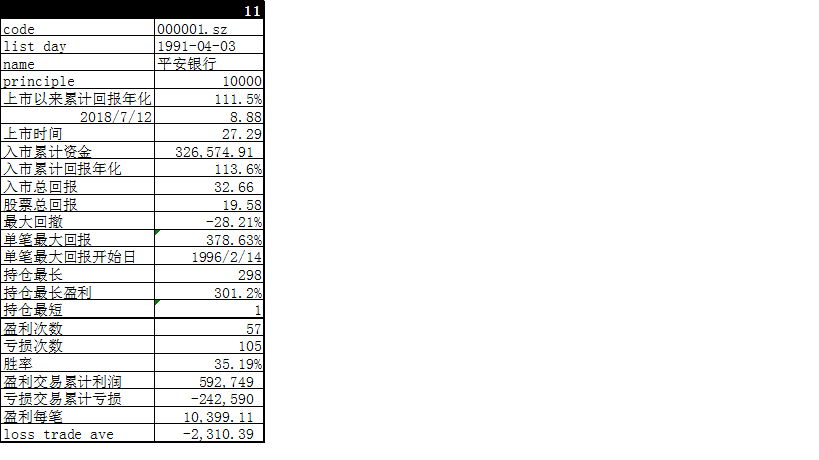 平安银行于1991年4月3日上市,策略模拟到2018年7月12日