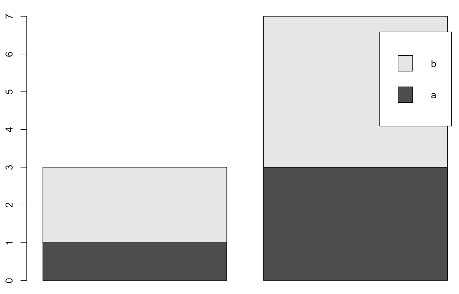 barplot(matrix(1:4,nrow = 2,ncol = 2),legend.text=c("a","b"))