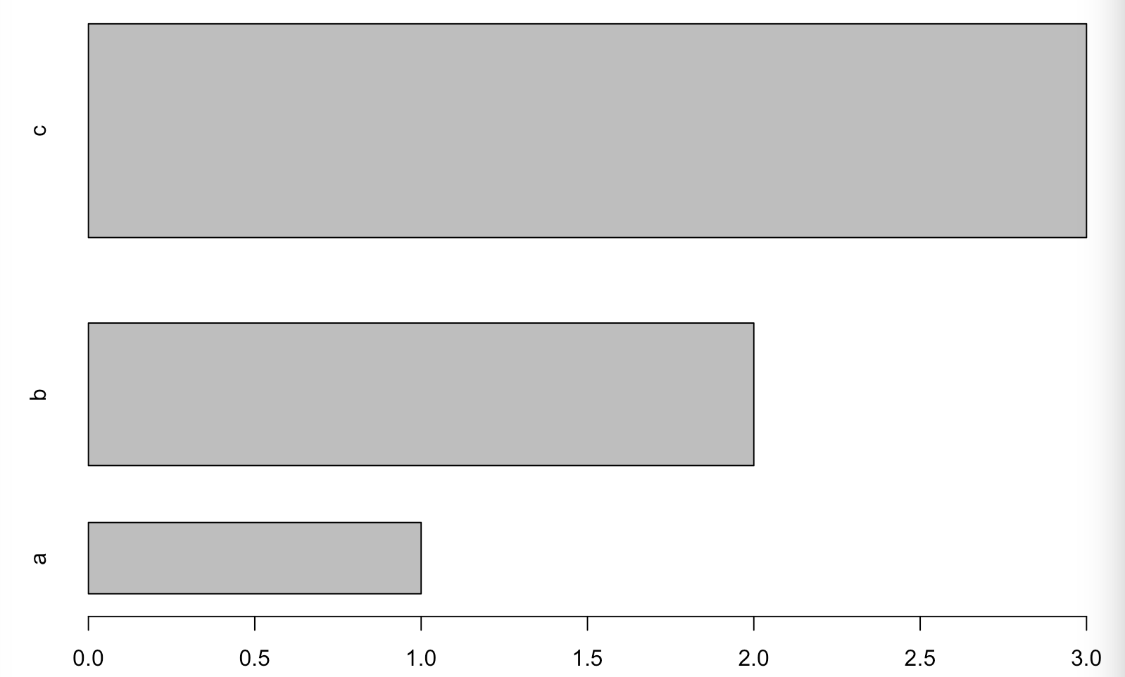 barplot(c(1,2,3),width=1:3,space = c(0.2,0.4,0.6),names.arg=c("a","b","c"),horiz = TRUE)