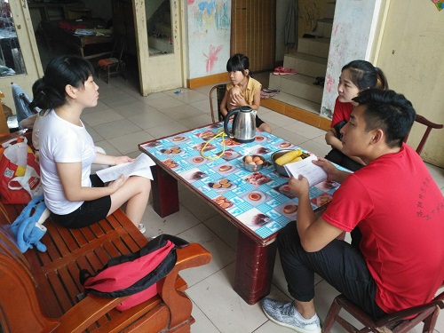 近日,支教队员们走进了三年级学生的家中。支教队员们在与孩子家长们的亲切交流中向学生家长们反映了他们在校的表现状况。例如,学生们在上课时的专心程度,上课回答问题的积极性,参加课外活动的积极性等等。两位同学的家长不约而同的认真倾听支教队员给出的想法与建议。此外我们还了解了孩子们的家庭基本状况,比如他们家庭的人员组成等,重点了解了学生们在家的表现及特点,以便可以制作出符合同学们特性的教学方法,从而更大程度的促进他们学习的进步。除此之外,队员们也发现了有些孩子存在着内向、自闭性格的现象。经调查发现,这些现象是由于孩子们长期缺乏长辈的关心,缺少同龄人之间的沟通而导致的。蒲公英支教队的队员发现问题所在之后,积极准备解决问题的办法——拿决心、怀细心、有耐心地与孩子交流,努力走进他们的内心中,与缺乏关怀的同学们进行心与心之间的交流,以让同学们能够获得更好的成长。