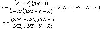 我的变截距模型残差平方和小于1,而且小于常截距模型残差平方和,因此根据第一个F统计量算是负值,根据后者算是正值,因此问题1,两个公式哪个是对的!前者来源于复旦大学出版的《高等计量经济学》,后者来自一份讲义!