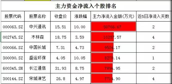 麟龙投顾个股资金方面,中兴通讯正式解禁,科技股受到极大的提振,资金在中兴本身净流入超过5亿元。芯片概念股木林森净流入超过1亿元。中国长城净流入超过0.95亿元,长江通信净流入超过0.78亿元。