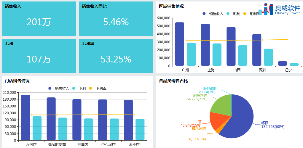本系列课程是基于易上手的奥威OurwayBI的基础课,视频+笔记+实操的结合下,即使是零基础,也能很快掌握操作技巧,独立完成可视化数据分析报表制作。