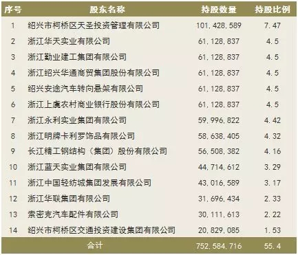 截止招股说明书出具日,持有其 5%以上股份的股东仅为绍兴市柯桥区天圣投资管理有限公司,其持股比例为 7.47%。