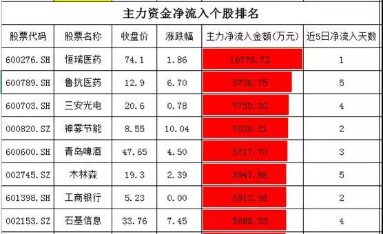 麟龙投顾指出,个股资金方面,整体上资金介入的程度不高,仅恒瑞医药净流入超过1.6亿元,其余个股均没有超过亿元。其中,鲁抗医药大涨,资金净流入超过0.97亿元。神雾节能涨停,资金净流入超过0.7亿元。