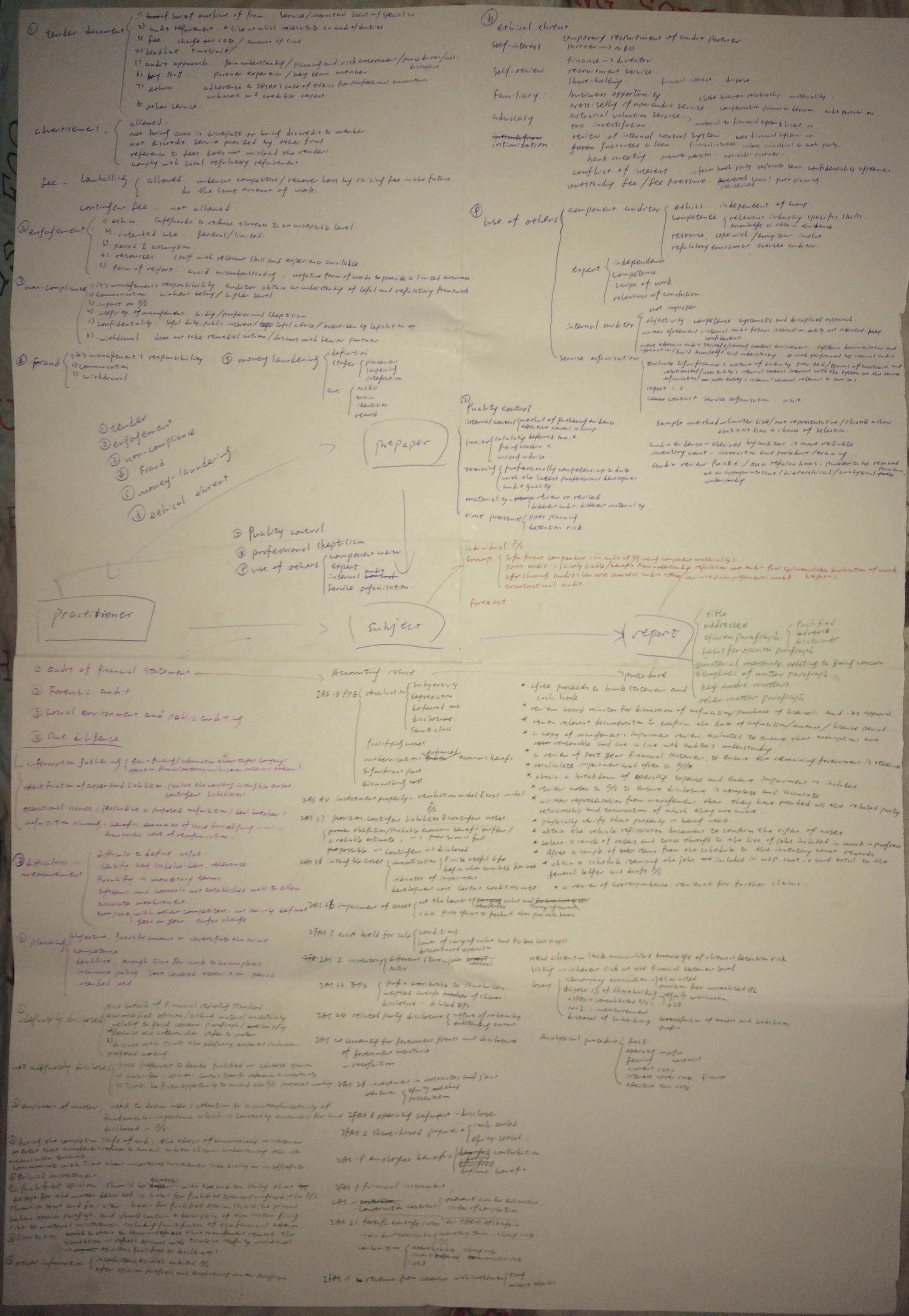 F8、P7都是审计,但难度的确不是一个级别的,不过要让我说P7到底难在哪里还真说不上来,可能是点太多了吧,又比较灵活,光靠背还不行。F8比较常规,搞懂了控制测试、实质性程序那些基本上就ok了。P7前两次考,过不了也是真的因为没消化,答题的时候觉得都懂,但是写不出,准备第三次的时候,又沉下心来把网课听了一遍(第二次考的时候没听),把总结又更新了下,最后放大招把知识点全部汇总在大海报纸上(放在文末),终于有点清晰明了的感觉。6月考P7的时候,时间控制的很好,不会的题赶紧先跳过,最后题应该都答完了,不会的小题瞎编也要写上去,考完试手基本上是抽筋状态、使不上力。