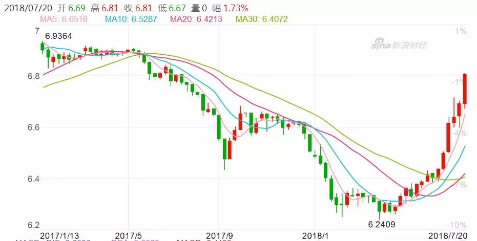 通过上图,我们可以清晰地看到过去一年多人民币对美元汇率的变化。