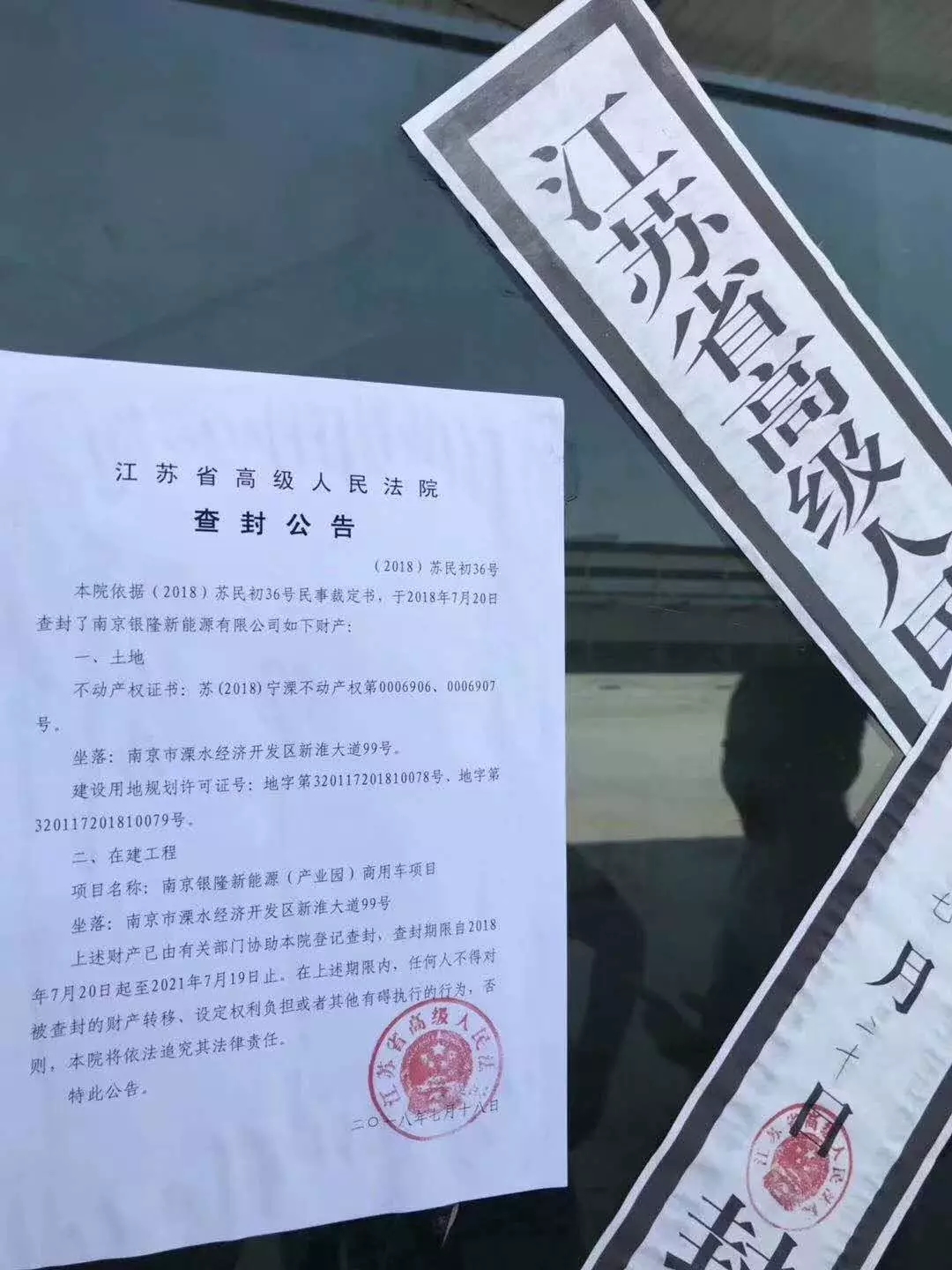 7月20日傍晚,一张江苏省高级人民法院查封南京银隆新能源有限公司的公告及封条照片,怒刷了微信朋友圈。