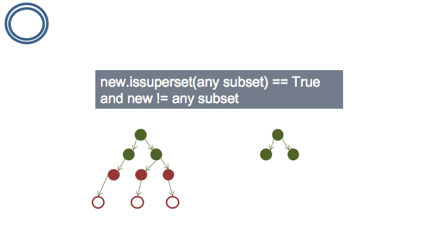 增强是指新加入的规则完全包含某棵已有的决策树。如图4,左边规则变量集合包含了右边已有的变量集合,并且新增了一个变量(红点),因此新规则相当于对老规则进行了扩充和细化。