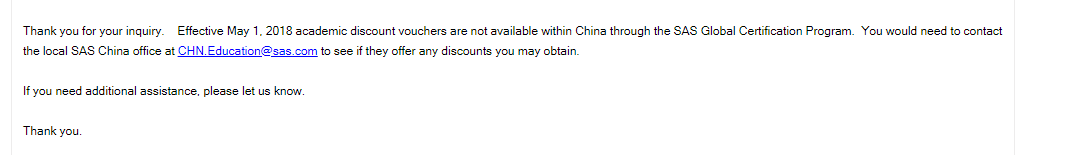 打算考SASBase,发过去了个人信息申请优惠码,可是却回复了从18年5月份开始优惠码就不能用了,有没有最近考的小伙伴使用过优惠码