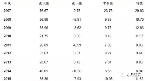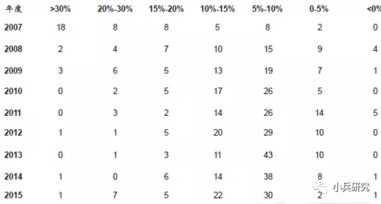 2007-2015年信托行业固有业务收益率情况(%)见下表: