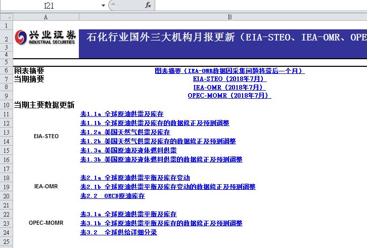 研究报告:兴业证券-石化行业国外三大机构月报更新(EIA~STEO、IEA~OMR、OPEC~MOMR),.xlsx