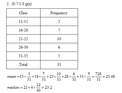 请问统计学大神们,这种频数分布表的中位数怎么求,我发现跟平时的不一样,平时的都是上一组的上限就是下一组的下限,但这个是分开的,我用面积平分的方法求得如图结果,被扣了0.3分,应该是错了吧。那应该怎么求呢。