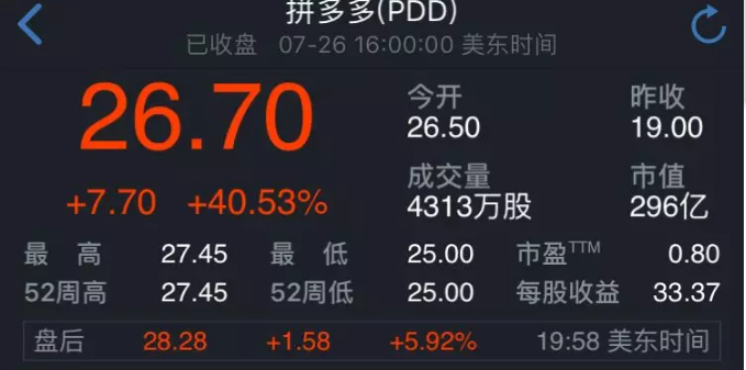 拼多多IPO首日股价表现