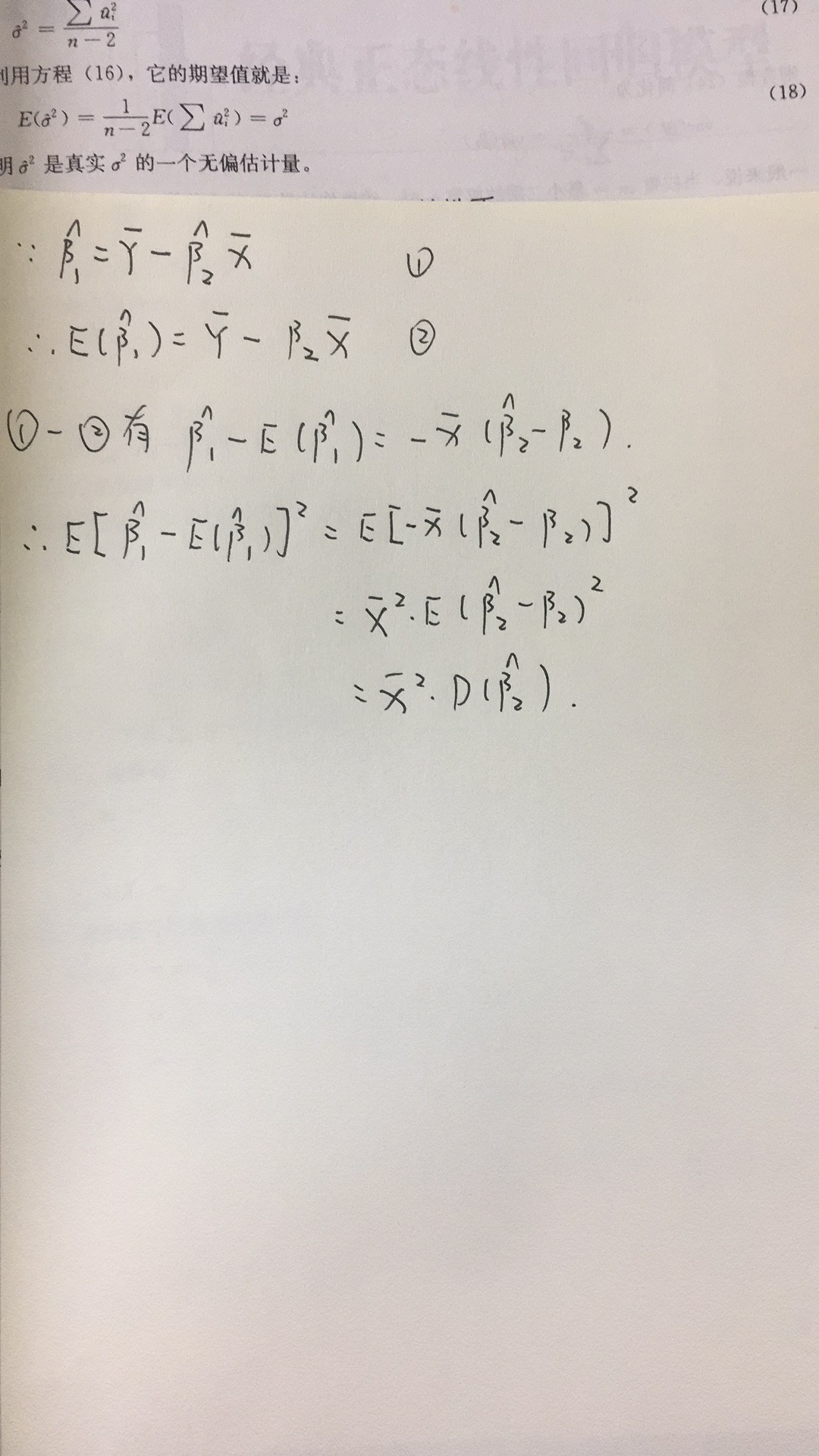 关于最小二乘估计量方差推导的问题