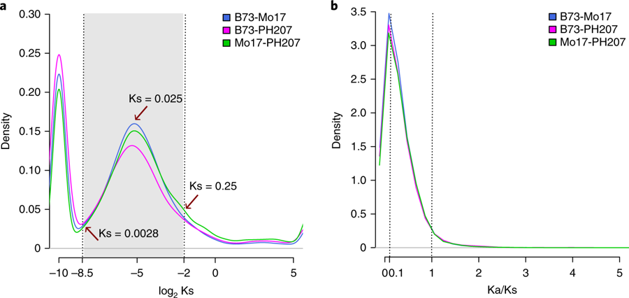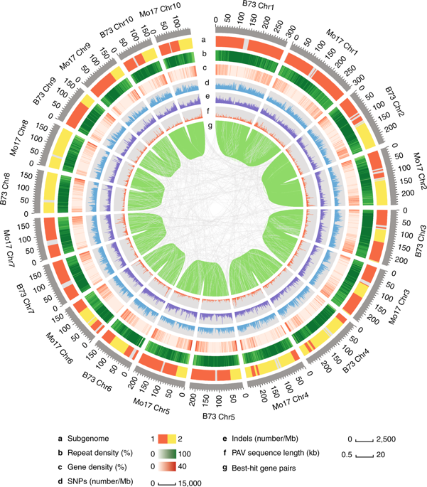 值得注意的是,赖锦盛研究组的比较基因组学分析揭示了广泛的种内基因顺序变异:大约10%的基因在B73和Mo17之间是相互非同源的。此外,与Mo17相比,超过20%的注释基因在B73中具有突变或大结构变异。在PH207基因组与B73和Mo17基因组的比较中也观察到这些大的基因顺序和基因结构变异。
