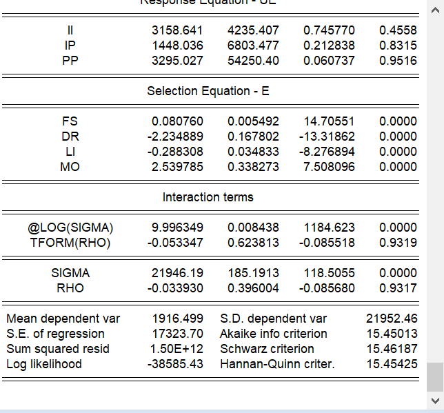 Eviews 9 实现的Heckman Selection model结果怎么看?