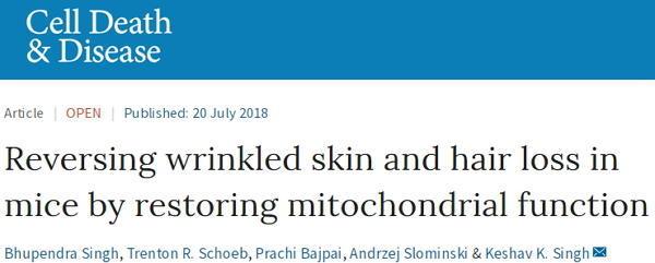 7月20日,《Cell Death & Disease》期刊发表了这一篇题为“Reversing wrinkled skin and hair loss in mice by restoring mitochondrial function”的文章。由阿拉巴马大学伯明翰分校(UAB)医学院的遗传学教授Keshav Singh带领的团队发现,引发这一奇妙“现象”的突变发生在核基因中,关联着线粒体功能。
