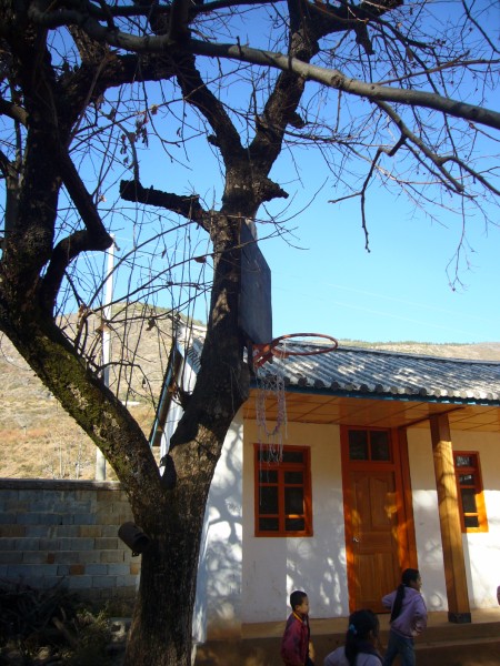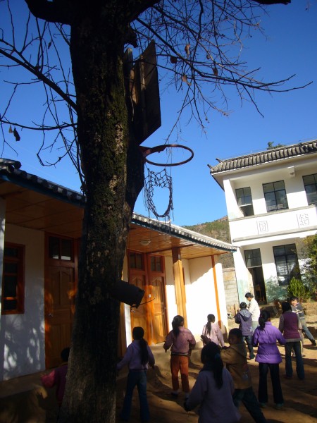 2009年12月,在中国云南省大理白族自治州的洱源县梨花村小学,见到了史上最“牛”的篮球架!