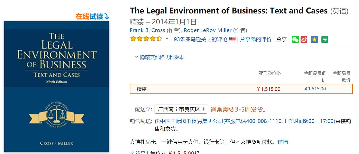 The Legal Environment of Business: Text and Cases ,全英文,感觉有点困难。请问有什么中文书籍是类似的?讲一个内容的?