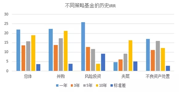 根据专业机构统计,在一年、三年、五年、十年的投资周期内,全球不良资产基金的内部收益率在各类策略基金中最为稳定,年化收益在11%-16%之间波动,标准差仅为2.8%,是所有类型基金中最低的。