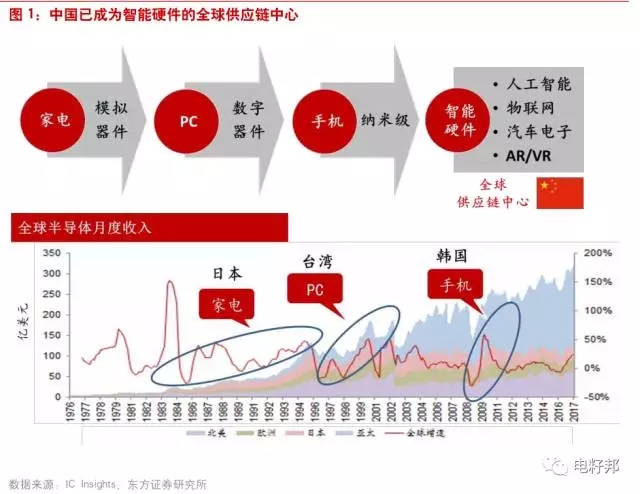 中国的电子企业随着近年来的高速发展,已由最初的劳动力成本优势,逐渐升级为在成本、资金、供应链、技术和人才等方面均具备全球领先实力的厂商,已形成全产业链的全面优势。在半导体和以智能手机为代表的智能终端领域,中国均形成了完善的产业链结构。