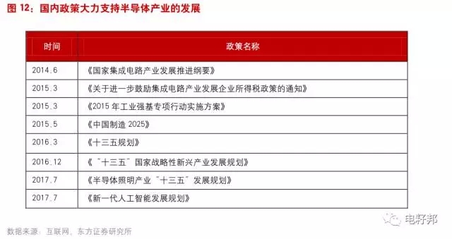 1)大国崛起,IC 先行:我国将半导体提升到国家战略的高度,给予政策和资金的大力支持,半导体产业将迅速发展,规模有望在 2020 年之前超越台湾。对比已经实现从落后到超越的我国显示面板产业,我们认为半导体产业发展潜力巨大。目前,设计、制造和封测已出现全球级的龙头企业,设备和材料即将迎来大发展。
