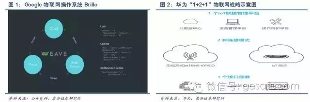 谷歌:提出Project IoT物联网计划,2015年发布Brillo物联网底层操作系统,该系统源于Android,支持ARM、X86、MIPS架构的智能硬件;
