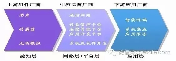芯片提供商、传感器供应商、无线模组(含天线)厂商、网络运营商(含 SIM 卡商) 、平台服务商、系统及软件开发商、智能硬件厂商、系统集成及应用服务提供商。