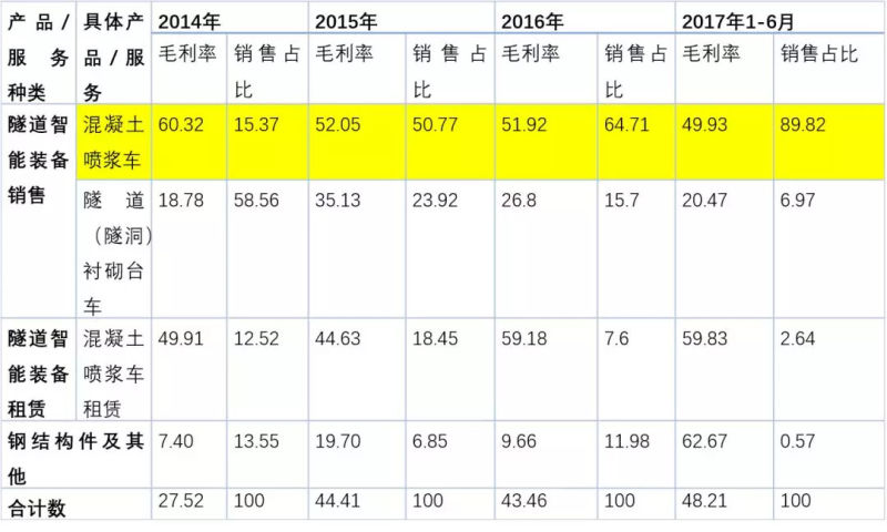 隧道施工智能装备的研发设计、生产、销售及服务,主要产品包括混凝土喷浆车,隧道(隧洞)衬砌台车等,提供的服务主要为混凝土喷浆车的租赁服务。