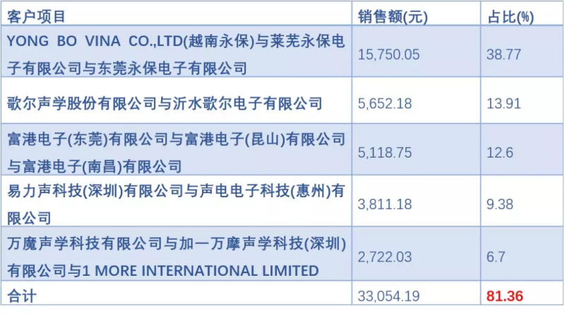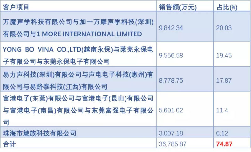 除此以外,朝阳科技的大客户集中度很高,2015、2016年的前五大客户销售额均占据了公司全年营收的八成左右。