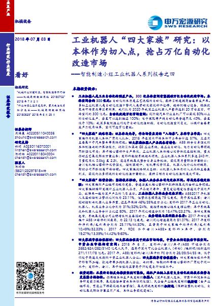 申万宏源-机械设备行业智能制造小组工业机器人系列报告之四:工业机器人“四大家族”研.pdf