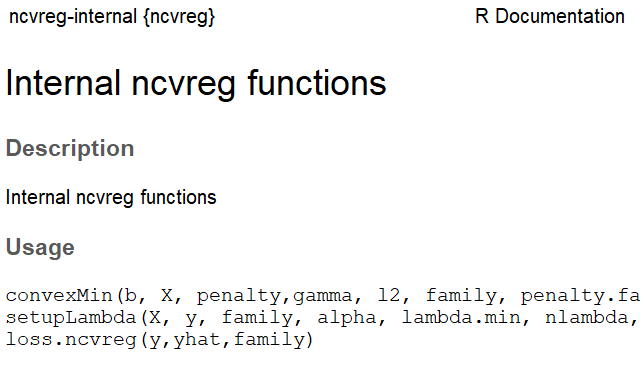 r的ncvreg包的Internal Function怎么查看?
