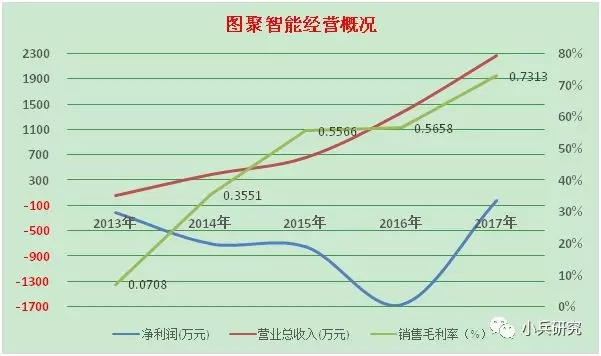 2012年成立,主营业务:室内地图数据制作、室内定位导航、基于位置的大数据分析和行业室内位置服务综合解决方案,图聚智能属于典型的初创公司,,经过5年的发展,收入迅速增长,收入增长率保持在60%以上,并开始逐步盈利。