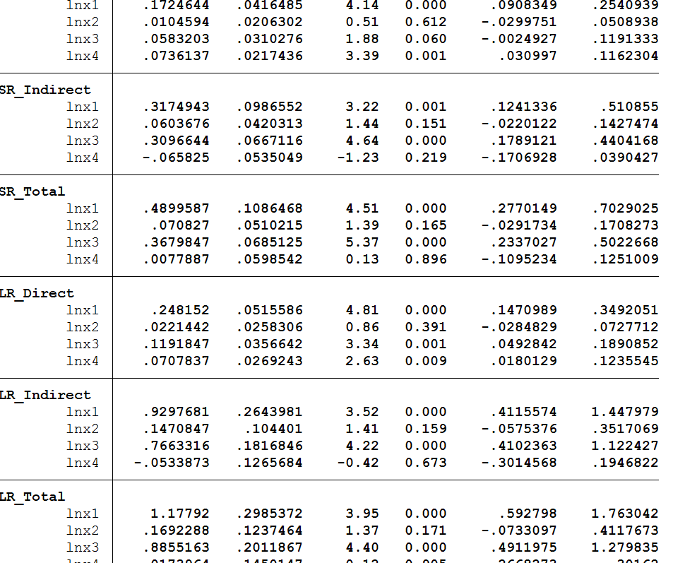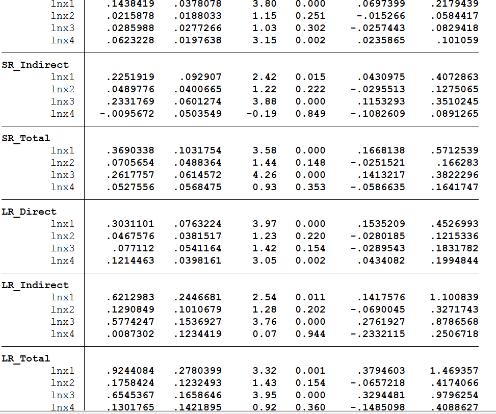 lingdu0819 发表于 2021-8-20 10:05 你好,请问你这个带有短期和长期的直接效应和间接效应是用什么命令做出来的呀?可不可以交流一下,非常感谢 ...