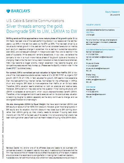 巴克莱-美股-卫星通讯行业-美国有线与卫星通讯:金发银丝,降级SIRI为减持,保持LSXMA为中性.pdf