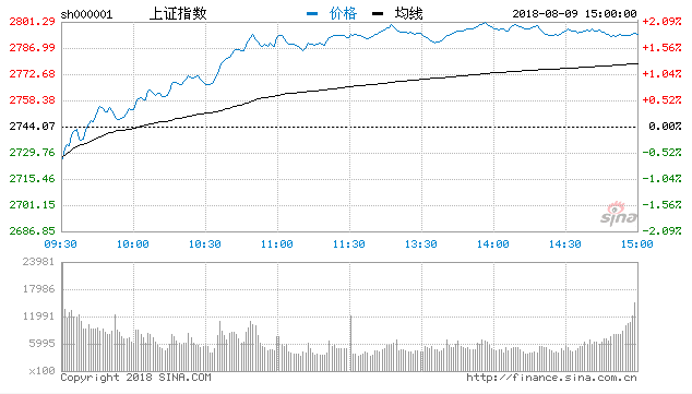 截止收盘,沪指报2794.38点,涨1.83%,深成指报8752.20点,涨2.98%,创指报1497.61点,涨3.44%。