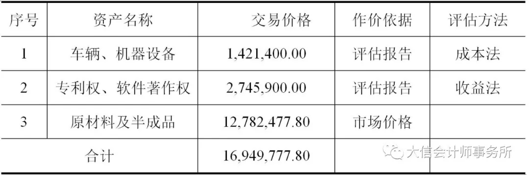 上述资产交易价格及依据如下表所示: