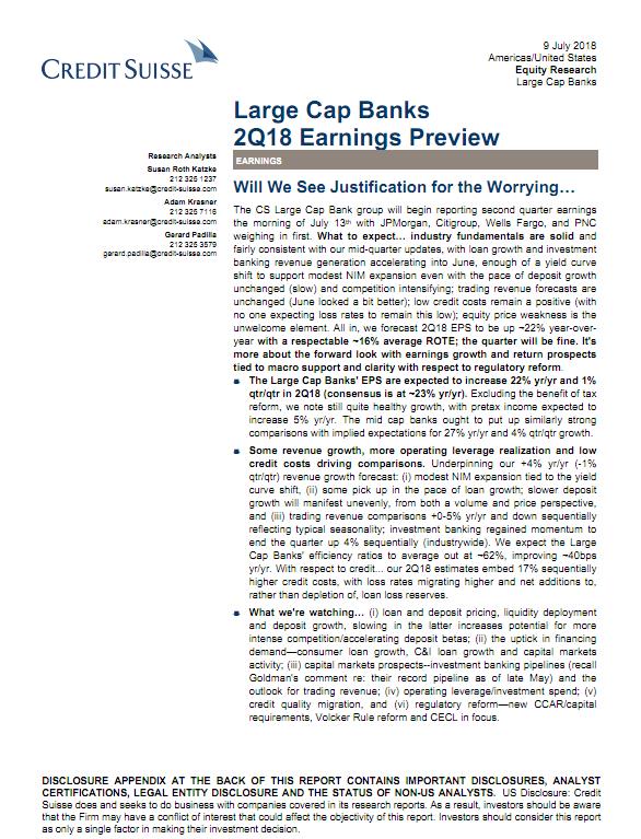 瑞信-美股-银行业-美国大型银行业2018年Q2盈利预览:我们会为担忧而辩解吗?-2018.7.9-27页.pdf