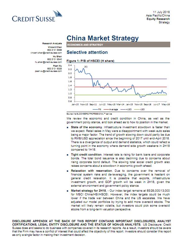 瑞信-中国-宏观策略-中国市场策略:选择性注意-2018.7.11-27页.pdf