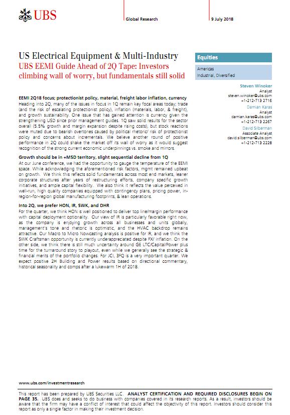 瑞银-美股-电气设备与多产业-投资者担忧攀升,但基本面仍扎实-2018.7.9-40页.pdf