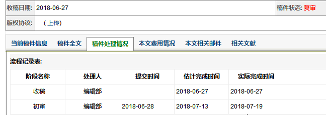 jone5582 发表于 2018-8-13 14:47 我6月底投稿到图书馆工作与研究,经历了初审-复审1-复审,目前停在复审阶段已经快一个月了,有了解的亲知道 ...