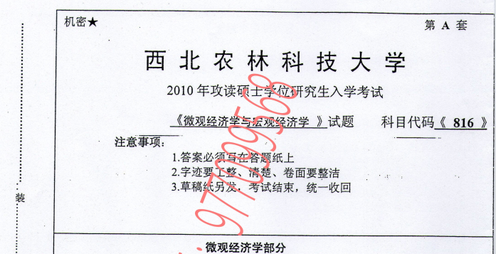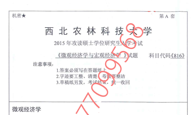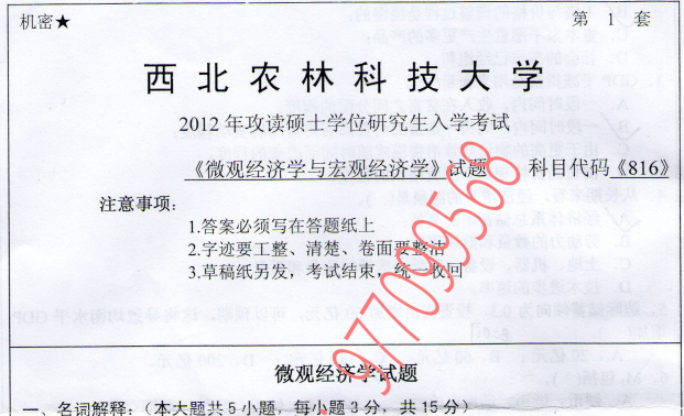 西北农林科技大学经管816真题
