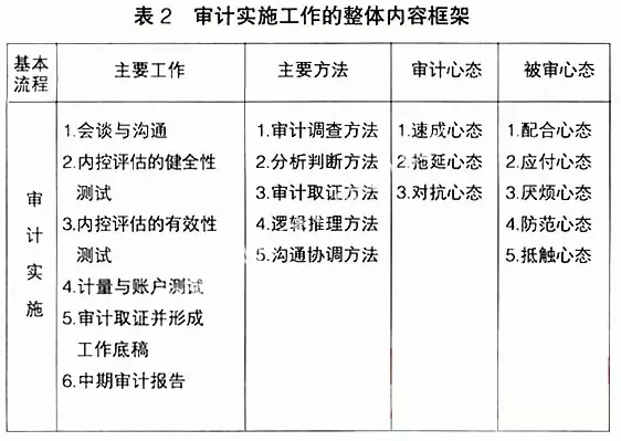 表2 审计实施工作的整体内容框架