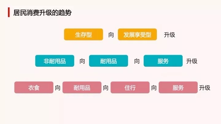 第二个大动力,我们先从国际经验来看,我们下面的新动力在哪里。现在我们国家已经走到了二和三之间,有些城市已经走到了第三个阶段。我们看一下消费者需求升级也看得非常清晰。