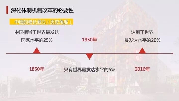 这是我们1850年、1950年、2016年我们与世界发达国家的水平的对比,我们再看,我们目前应该还快一些,应该取得成绩更大一些。