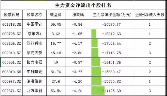 而净流出的个股中,白马权重近期是主流,中国平安净流出超过2亿元,京东方A净流出超过1.8亿元,欧菲科技、紫光国微净流出超过1.7亿元。