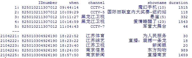 ③统计了不同IDnumber的用户观看电视节目的总时长(duration);