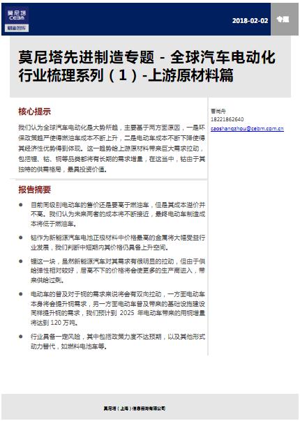 先进制造专题:全球汽车电动化行业梳理系列(1),上游原材料篇-20180202-莫尼塔-20页.pdf