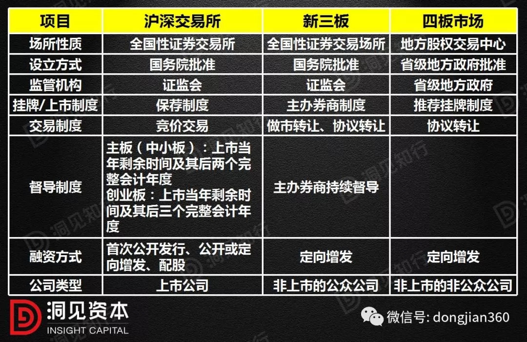 沪深交易所作为场内交易市场,与新三板市场和四板市场具有显著区别,其主要区别如下: